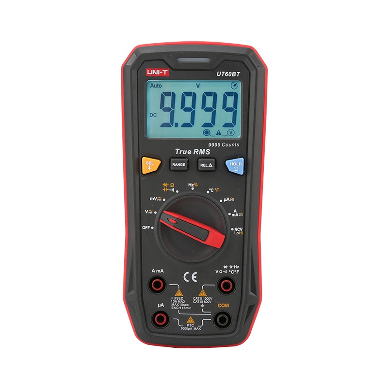 UT60BT是9999位真有效值高分辩率自动量程万用表,产品采用新一代智能ADC芯片,具有测量过压、过流报警提示,电路配备完善的6kV防雷电击和防高压误测装置;符合安规CAT II 1000V/CAT III 600V要求,同时配备蓝牙传输功能,可通过APP进行操作,是电子电工界优先选择的数字万用表。