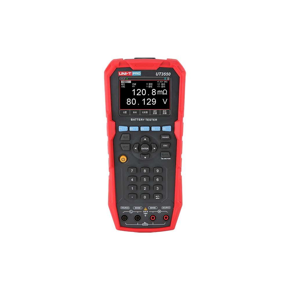 UT3550手持电池内阻测试仪采用高性能微处理器控制,实现全自动实时检测。全新的设计交互体验,兼备了手持表的便携性以及台式仪器的优越性能,是一款高精度、高分辨率的测量仪器。 全新设计的交流电阻测试原理用于电池的内阻测试,包括锂电池、铅酸蓄电池、纽扣电池、氢燃料等各种电池的检测。**的设计方案,可以直接对UPS进行在线测量,而不损失准确度和稳定性。
