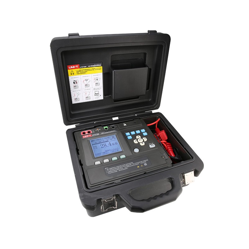 UT515B 绝缘电阻测试仪 UT515B 10kV 数字式高压绝缘电阻测试仪,是一款智能型绝缘测试仪器,整机电路设计采用微机技术设计为核心,以大规模集成电路和数字电路相组合,配合强大的测量和数据处理软件,完成绝缘电阻、电压等参数测量,性能良好,操作简单。具有 500V, 1000V, 2500V, 5000V, 10000V 量程;各量程的输出可设置10%步进微调电压,测试数据可保存于设备内存中,通过PC软件进行下载或实时传送至PC端进行数据分析;全按键操作,电子数字式显示,省时省力,一键即可完成测试,**传统“摇表”进入数字化电子时代。 | UT515B产品主要特点 5.1寸工业显示屏(320*240)数字显示更加直观; 10kV电压输出 绝缘电阻10TΩ ,短路电流5mA; 自动吸收比(DAR)和极化指数(PI)系数; 步进功能:各量程可步进10%; USB数据传输,通过PC端软件进行数据分析; 999组数据存储; 可充锂电池:14.8V 5200mAh(配备专用充电器 输入110~220V 50Hz~60Hz 输出14.8V 2A); 可同时显示测试中的绝缘值与测试电流; 按键带灯指示:电源键自带绿灯指示高压输出测试键自带红灯警告指示; 自动放电:测试电容性负载等的绝缘电阻时,测试完成后自动释放保存于电容回路中的电荷,可显示放电进度情况; LCD背光灯功能:背光灯功能有助于昏暗位置或夜间作业。 |