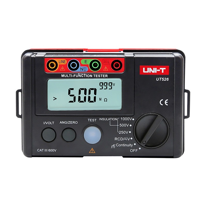 UT526 电气综合测试仪 UT526是一款数字多功能电器测试仪表,整机采用全新设计以及大规模集成模拟电路、数字电路和微机芯片组合设计而成,主要完成(RCD)漏电保护器、低电阻连续性、绝缘电阻、直流电压和交流电压等参数测量;其功能全面,准确度高,性能稳定,操作方便可靠。适用于测量(RCD)漏电保护器、各种电气设备的绝缘电阻和低电阻连续性测试,对各种电气设备漏电保护器进行维修保养、试验及检定是您的理想的选择 | UT526产品主要特点 液晶显示9999字读数,四格电池图显示电池电量 绝缘电阻测试功能 接地电阻测试功能 RCD漏保测试功能 交/直流电压测试功能 TEST单键操作,快速捕获测量数值 RCD相位转换(0°和180°) ZERO接地电阻归零功能,提高测量准确度 连续测量模式,具有红色警示灯及蜂鸣器报警功能 超量程指示、低电量警告 仪表CE欧洲共同体(European Union)标准 |