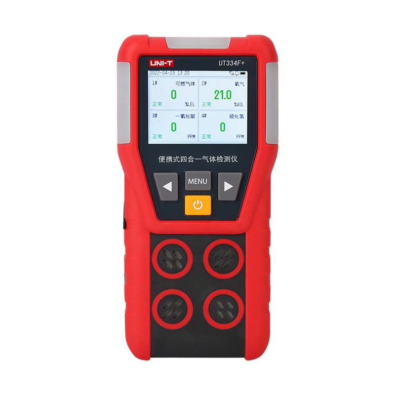 UT334F+ 便携式四合一气体检测仪 UT334F+是一款便携式语音型四合一气体检测仪,是一种可连续使用检测泄漏有害气体浓度的安全型设备。采用了先进的集成电路技术、优质的进口气体传感器,具有优秀的灵敏度和出色的重复性;使用高分辨率彩屏显示屏,支持中英文界面和中英文语音提示,能通过上位机软件导出报警记录,使用维护简单;外壳采用高强度工程塑料,强度高,具有良好的抗振性能。 | UT334F+产品主要特点 优质灵敏传感器,感应灵敏,探测更准确 高清彩屏显示 5年寿命氧气传感器 声音,报警灯,振动三重报警 曲线图周期测量显示 USB通讯功能,可通过上位机软件导出报警记录 2700mAh锂电供电 开机自检 防爆认证 |