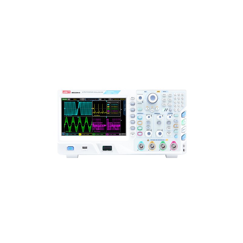 MSO/UPO2000系列数字荧光示波器,全触摸屏控制,全新交互体验,让您用手真实流畅地感受,波形的荧光律动,瞬态变化。全新开发的系统平台,核“芯”展现强大的功能,包括Fast Acquire技术准确捕获异常事件、4M点增强型FFT功能,内置瀑布图等高级测量、区域触发细致捕获特征信号、硬件解码方式使速度大幅提升,独立时基分屏功能Multi-Scopes 等。 产品功能 触摸屏设计,全新的交互体验 8英寸触屏设计,支持多种手势操作,例如:点击,滑动,缩放,编辑,拖动等。使测量动作更加流畅、便捷,用户更能快速掌握。同时,仍然保留了传统的按键和旋钮操作,并最大限度地优化了交互体验。 丰富的测量功能 最大值、最小值、顶端值、底端值、中间值、峰峰值、幅值、平均值、周期平均值、均方根值、周期均方根、AC均方根、面积、周期面积、过冲、预冲、频率、周期、上升时间、下降时间、正脉宽、负脉宽、正占空比、负占空比、上升延迟、下降延迟、相位、FRFR、FRFF、FFFR、FFFF、FRLF、FRLR、FFLR、FFLF、脉冲计数共36种测量参数; XY模式 XY模式光标测量,可以快速测量两路信号之间的相位差; 波形捕获率1,000,000wfms/s 采用的创新数字信号并行处理技术,正常采样可达200,000wfms/s超高捕获率,捕获偶发信号。(在Fast Acquire模式可达1,000,000 wfms/s) 波特图 用于环路分析。是一种经常用于表征当今各种电子设计的频率响应(增益和相位与频率)的关键测量,包括无源滤波器、放大器电路和开关模式电源的负反馈网络。 通道分屏功能Multi-Scopes 2.0 波形显示上更加人性化,方便用户体验与分析波形细节。 区域触发 区域触发可和现有的基础触发、高级触发、协议触发组合使用,可以完成各种偶发、复杂特征信号的捕获。 LA逻辑分析仪 可用于并行总线,协议解码和时序测量8位并行ADC输出。 低底噪 500μV/div 交流有效值<50μV 全内存硬件解码 解码速度大大提升。深存储56Mpts下的全内存硬件解码,解码时间由十几秒提高到了毫秒级,实现了实时解码,极大提高用户的问题诊断效率。录制的波形,同样支持全内存硬件实时解码。 Ultra Phosphor 2.0超级荧光显示技术 采用**的Ultra Phosphor 2.0显示技术便于显示波形信息细节,提供类似模拟示波器的荧光效果显示,不仅显示波形随时间的变化信息,而且能及时体现信号出现的概率。 丰富的高级触发及总线触发功能 新增多种汽车总线触发及解码,可以帮助用户准确快速地捕获并显示出关注的信号,从而发现问题所在。 频率计+电压表 多通道独立7位硬件频率计; DVM支持多通道独立交直流真有效值测量; 4M点增强FFT(瀑布图) 200组历史频域结果 可显示频域趋势 支持每组回看 支持自动测量 4M点增强FFT(分屏) AWG函数任意波形发生器 内置函数任意波形发生器,可输出正弦波、方波、斜波、脉冲波、任意波、噪声和直流。正弦波最大频率输出50MHz。 Web Control支持远程跨平台操作 内嵌 Web Server,通过浏览器即可对仪器进行远程控制、观察波形、获取测量结果,可满足高压、高温等特殊环境的应用需求。无需安装驱动软件和上位机软件,即可实现跨平台操控。支持 PC和手机两种风格的网页布局和触摸操作,使用起来更加简单方便。 技术参数