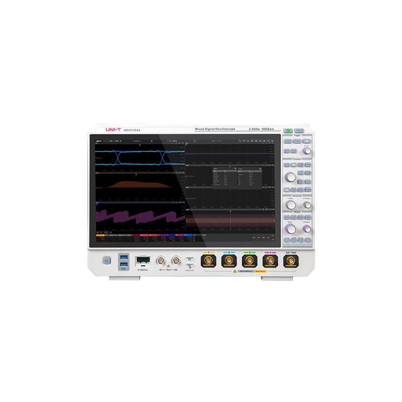MSO7000X系列高带宽混合信号示波器,拥有非凡的性能指标,全面细致的分析功能,人性化的触控体验,助您在科技的海洋无限探索。 2G带宽是高端示波器的起点,MSO7000X系列带宽高达2.5GHz,在高速信号分析中有明显的优势。MSO7000X采用UltraAcq®技术,提升波形捕获率达1,000,000 wfms/s,结合1G超长存储深度,显著提升异常信号捕获能力,以及波形细节测量和分析能力。搭载Win10 64位操作系统,为用户提供稳定可扩展的系统平台,通过提供示波器API接口,显著提升系统的智能化程度,满足日益复杂的用户需求。 产品功能 多通道平铺-发现更多信号细节 ●方便查看每个通道的波形 ●可全屏查看单通道波形 ●每个波形保持ADC最大分辨率 多窗口布局-灵动布局,最大化展示 ●任意组合 ●任意大小 ●悬浮下沉 ●全屏分窗口 Windows+-发现更多可能 ●支持MATLAB嵌入式编程,运算结果直接渲染到示波器窗口 WebServer-兼容多平台远程操控 ●SCPI远程控制 ●远程查看和控制 ●导出波形文件 ●在线浏览使用手册 ●支持手机访问 8种电源测量与分析 ●电源质量 ●谐波分析 ●开关损耗 ●安全工作区 ●涌入电流 ●波纹分析 ●电源效率 ●启动/关闭时间 11种串行协议触发和分析 ●RS-232/422/485/UART、SPI、I²C、 ●CAN、CAN-FD、 SENT 、LIN、FlexRay、AudioBus ●MIL STD 1553、ARINC429 ●支持数据触发和包类型触发 ●支持事件列表和搜索功能 抖动分析及眼图 定位时钟和总线信号抖动带来的系统故障 ●TIE抖动、周期抖动、cycle-cycle抖动 ●TIE趋势图、TIE频谱图 ●直方图 ●浴盆曲线 技术参数
