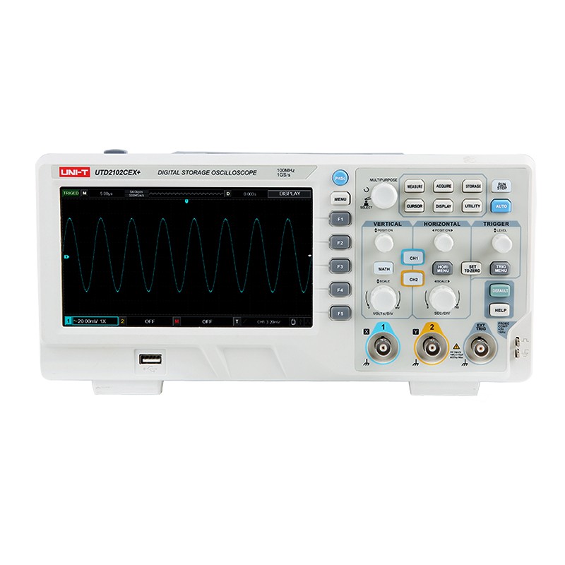 UTD2000CEX+是一系列经济型台式数字存储示波器,满足基础测量的关键需求,简洁清晰的前面板设计,更方便于用户操作。UTD2000CEX+系列最高配置200MHz级别带宽,实时采样率为1GS/s(每通道),提供双通道等性能输出,存储深度64kpts。是一款针对广泛的数字示波器市场包括通信,半导体,计算机,仪器仪表,工业电子,消费电子,汽车电子,现场维修,研发/教育等众多领域的通用设计/调试/测试的需求而设计的示波器。