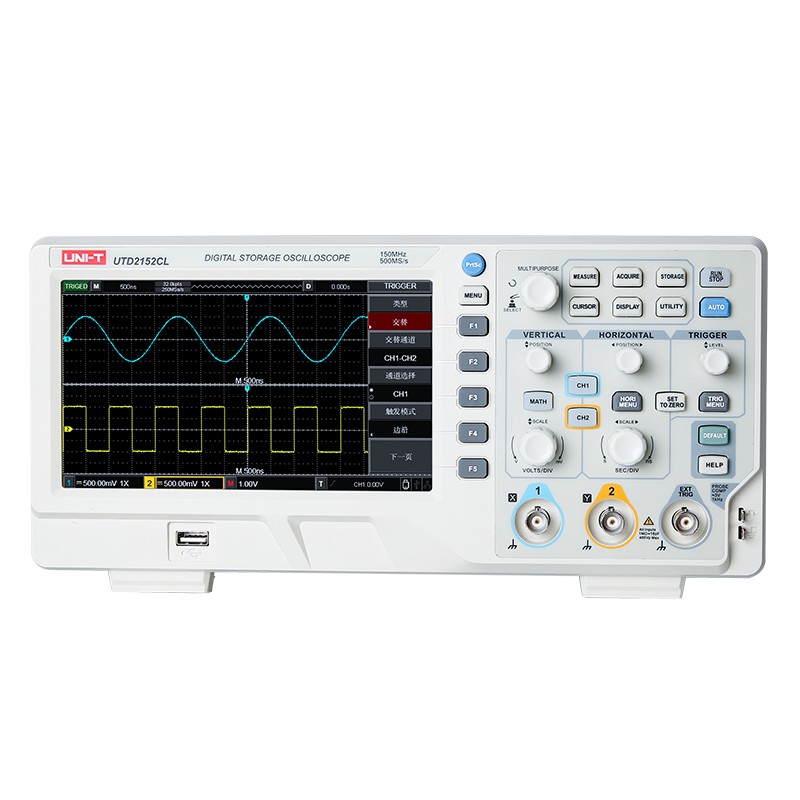 UTD2000CL是一系列经济型台式数字存储示波器,满足基础测试的关键需求,简洁清晰的前面板设计,更方便于用户操作。UTD2000CL系列配置70MHz、150MHz级别带宽,实时采样率为500MS/s,提供等性能双通道测试,存储深度64kpts。是一款针对广泛的数字示波器市场包括通信,半导体,计算机,仪器仪表,工业电子,消费电子,汽车电子,现场维修,研发/教育等众多领域的通用设计/调试/测试的需求而设计的示波器。