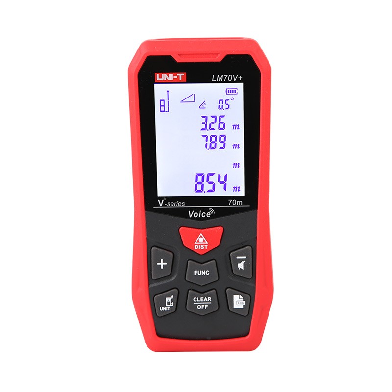 | LM70V+产品主要特点 具备自助校准功能 配备语音播报功能 多种基础测量功能 99笔数据存储 测量单位米、英寸、英尺、英尺+英寸可供切换 2.0英寸高清自动背光大屏显示, 具备USB充电功能 具有电子倾角测量功能 |