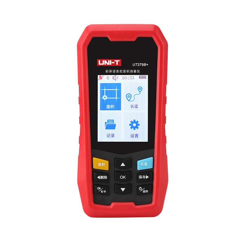 UT379B+ 面积测量仪 UT379B+面积测量仪是一款专业的高精度面积测亩仪表本机具有精度高,搜星快,外观采用流线型设计,简洁漂亮,产品小巧更便于携带,并配备大容量锂电池,能长时间的工作,产品防尘抗震,完全适合野外工作环境。 | UT379B+产品主要特点 四星定位(GPS、北斗、Glonass、Galileo) 2.4寸240*320彩屏 中文语音播报 2000mAh锂电池 面积/长度测量(手动/自动/暂停) 速度测量与海拔测量 实时显示轨迹 坡面面积测量(手动设坡度) 多种测量单位(面积提供9种单位,长度提供6种单位) 记录存储(99条带轨迹图记录) 卫星信号强度显示 USB通信功能 |