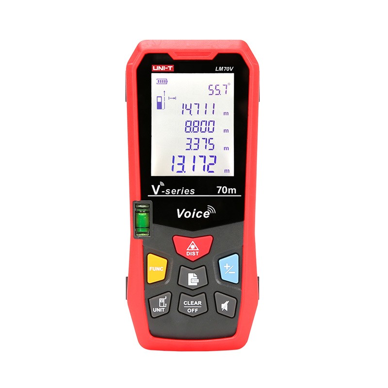 LM70V 激光测距仪 具备六种基础测量模式以及自动水平、自动垂直测量,全功能全操作语音播报,既可以帮你更快上手产品的使用,也能在你无暇查看屏幕时语音通知读数,特别是在一些特殊的测量环境下,使你可以在不用查看屏幕的前提下获取读数,有效拓展产品的测量维度。内置20组数据存储空间,测量单位米、英寸、英尺可供切换,2.0英寸高清自动背光大屏显示,具备USB充电功能,附带物理水平泡,功能齐全,是一款居家办公都必备的测距工具。