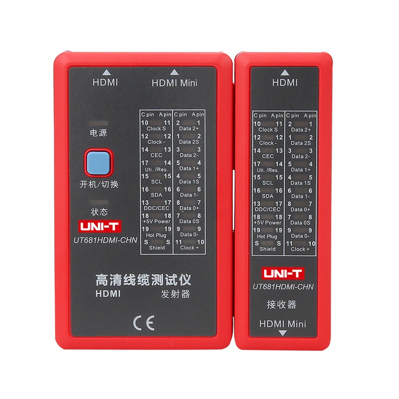 | UT681HDMI产品主要特点 HDMI/MINI-HDMI高清数据线测试仪 快速对线类型:Type A对A, A对C C对C连接头 检查高清线缆缺线,短路,断路和交叉. 20个可视的LED状态显示. 扫描和全显两种测试模式可以自由切换 单按键操作方式 手动/自动关机(10 分钟没有操作) 低电压指示 认证:CE 供电方式:9V层叠电池 |