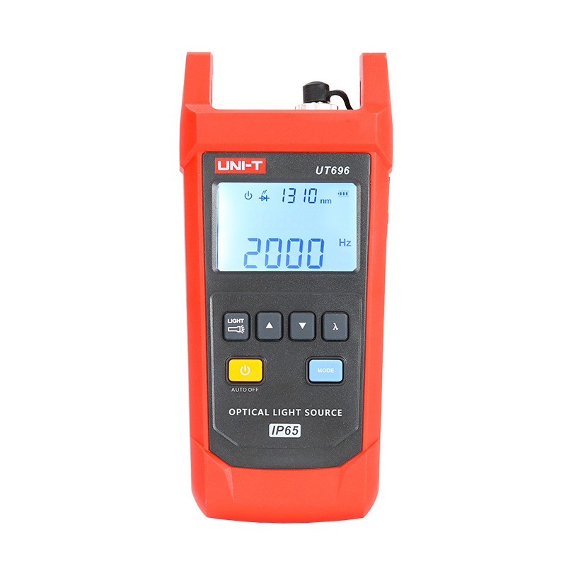 UT696 手持式光功率计 UT696:光源(光源功能)主要用于连续光信号功率的测量,光器件插入损耗测试、端到端的光纤识别等。机身采用先进冷塑模工艺制作,美观耐用,造型设计符合人体工程学要求。产品采用内藏式探测器,可使其受到良好保护。具有IP65防水防尘、背光显示、自动关机、手电筒功能 广泛用于光缆施工与维护、光纤通信、光纤传感、光CATV等领域 | UT696手持式光功率计产品主要特点 光源+手电筒功能 波长:1310nm、1550nm双波长光源 输出光功率:﹣4dBm、﹣6dBm、﹣8dBm、﹣10dBm、共4档可调 内部调制:0hz/270hz/1000hz/2000hz 光接口:FC/PC 适合光纤:SM/MM |