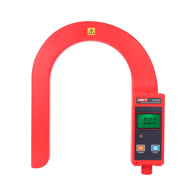 UT257C 钩式大电流表又叫钩式电缆漏电巡查仪,由超大口径的钩式电流 表、绝缘杆等组成。钩式电流表内置双层柔性线圈:轻便、精度高、量程广、 线性度好。能在线测试1000V以下的裸导线或汇流母线,或10kV以下具有安 全绝缘外皮的线缆之电流、负荷、漏电流等,特别适用于井下、野外多芯粗电 缆的漏电巡查。电流量程为 AC 0~9999A,可测量导线或电缆最大外径Ф 168mm,可测量母排最大尺寸168mm×245mm。 钩式电流表可以挂在线路上测试,LCD 显示,清晰直观。绝缘杆轻便,具 有防潮﹑耐高温﹑抗冲击、高绝缘等特点;