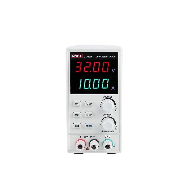 UTP1000系列经济型开关直流电源,拥有四位电压、电流、功率数码屏显示,测量范围广泛,具备10mV/1mA高精度分辨率,同时具备多种保护功能,可稳定可靠的运行,具有高性价比优势,是广泛应用于家电维修及电子产品DIY等场景的理想选择。 产品功能 功能显示界面 UTP1000系列开关电源支持电压电流功率同时显示,对测试结果进行实时监测; 面板锁定功能 长按锁定面板,防止误操作 三组数据存储调用 过流保护 实际输出值高于设定值时保护功能被触发,屏幕显示“-ER OCP-” 过压保护 实际输出值高于设定值时保护功能被触发,屏幕显示“-ER OVP-” 高分辨率 分辨率10mV/1mA 技术参数