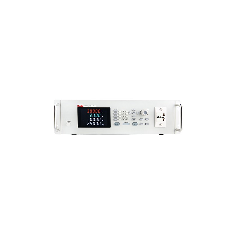 UAP系列可编程交流变频电源采用先进直接数字频率合成器(DDS)波形产生技术和正弦脉冲宽度调制(SPWM)技术,输出交流电压频率稳定度高,连续性好。测量精度高,适用电流正弦半波及其类似的带直流分量的各种波形的测试。简单而人性化的面板设计,响应快速,兼容性强,既能满足桌面式应用测试,亦能搭配其它仪器,组建测试系统,实现对产品的自动化测试。 产品功能 四参数显示,五位数测量 电压RMS (五位数) 电流RMS 功率 频率/PF(可切换) 多种保护、安全可靠 过流保护 Over Current 过载保护 Over Load 过温保护 Over Temp 短路保护 Short Circuit 标配上位机编程远控 可远程实时监测各项数据 数据导出方便快捷 数据生成图表,变化更加直观 产品应用 交流变频电源可以模拟世界各国的供电电压和频率,可作为普通家用电器如打印机的供电电源。 交流变频电源可以模拟世界各国的供电电压和频率,也可以为高功率用电器如焊台的供电。 UAP系列可满足生产流水线高效快速稳定的测试需求 可编程交流变频电源也是组建自动化测试系统的必需设备之一 技术参数