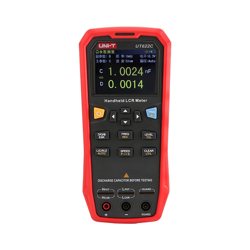UT622系列LCR数字电桥是用于测量电感、电容、电阻等元件参数的便捷手持式测量仪器,体积小巧,采用 3.7V 1800mAh锂聚合物电池供电或外部电源适配器供电,既可适用于台式机的应用场所,更为流动测量和手持测量场合提供了极大方便。仪器操作简洁直观,测试频率、参数、速度选择即按即现;同时还具备公差模式可进行元件分选,记录模式可辅助获取读数;操作方便的开路短路清零功能提高测量准确性;实用配置菜单可设定按键音、自动关机等操作。