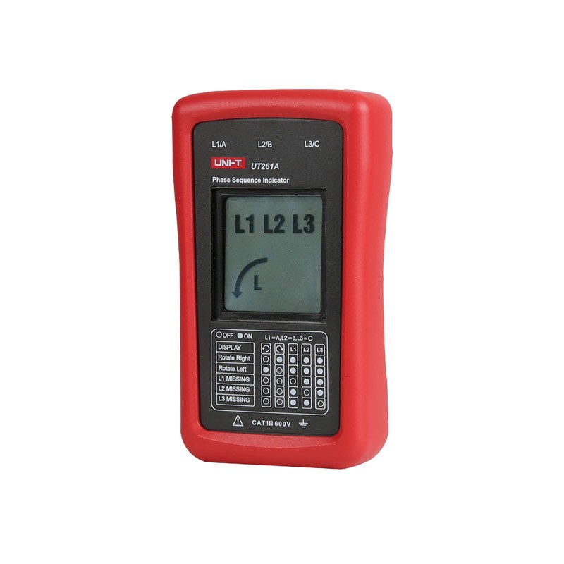 UT261A是一款便携式手持式仪表。设计用于判断三相系统的相序及是否缺相。如果您经常接触到马达,那么这款测试仪表就是你的工具袋中的必备工具。