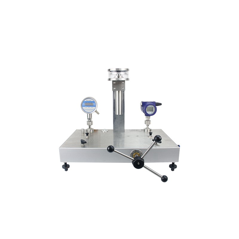 随着国内计量行业的发展,原有的气体介质油润滑的真空活塞式压力慢慢退出了历史的舞台,取而代之的是气体活塞式压力计,纯气体活塞式压力计压力稳定可靠,大大提高了活塞压力计的灵敏度和不确定度,为高精度计量提供了**的标准仪器。 FKQ型活塞压力计满足: 符合JJG1086-2013 《气体活塞式压力计》 符合JJG59-2006《砝码》 符合JB/T-12017-2014《 气体活塞式压力计》 活塞压力计专利证书: 一种动态密封结构的使用 产品用途 气体活塞压力计是高准确度压力标准器,用气体做工作介质,可测量和校准表压、绝压、真空压力(负压)等。活塞压力计系统采用碳化钨材质。从而保证活塞具有不锈、耐磨和使用寿命长的特点。用气体做工作介质的活塞压力计与用液体做工作介质的活塞压力计相比较,由于它们使用的 工作介质不同,所以气体活塞压力计活塞的自转延续时间长、灵敏度高、重复性好,测量数据准确可靠。 产品特点 活塞系统采用碳化钨材质,耐磨,温漂系数小,使用寿命长。 压力范围-100KPa~600KPa内任选 满足JJG1086-2013《气体活塞式压力计检定规程》区别传统油润滑气体活塞压力计。 压力接口为快速接口,方便快捷。 阀门采用独特设计,调压方便。 可选温度、压力、下降数字指示系统,方便快捷。 正负压切换,方便快捷。 测量范围:名义标称测量范围与实际测量范围一致。 活塞系统可以方便拿出送检(不用携带沉重的主机台) 可作为传递用检定活塞式压力计;也可高精度测试用。可配kg砝码和MPa砝码。 加压系统先进,轻便耐用! 砝码采用挂篮结构,重心低,稳定性极好。 每台均出具西北计量测试研究院《检定证书》 技术规格
