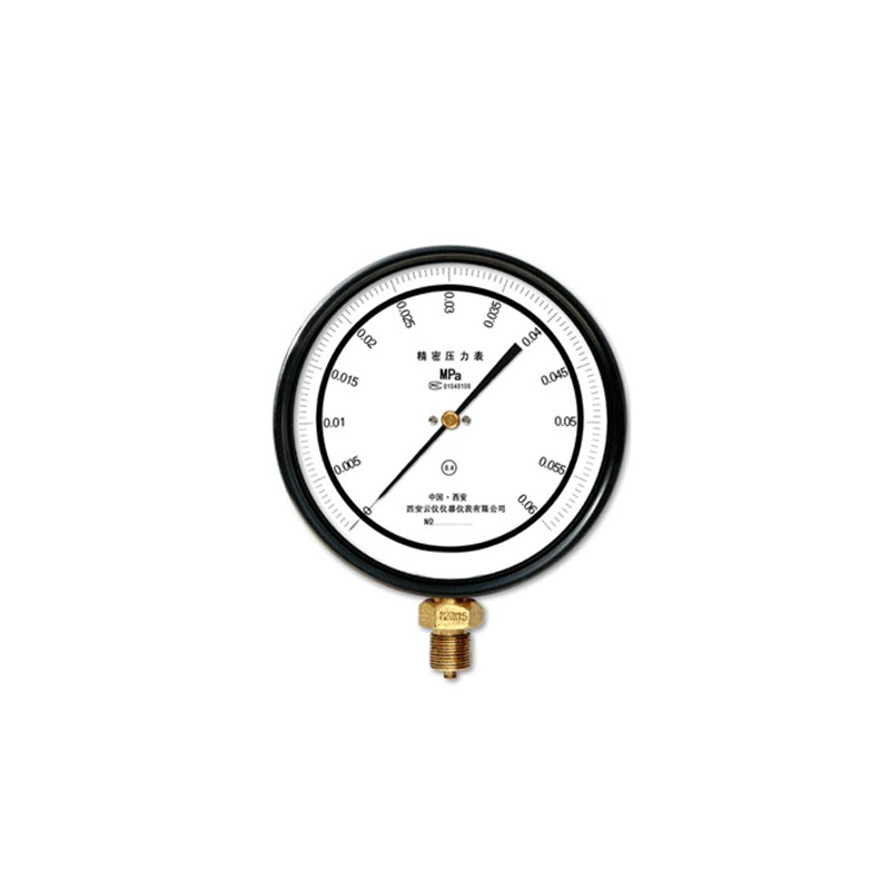 精密压力表主要用来校验工业用普通压力表,也可用于在线测量高精度工作介质的压力。是压力测量测试、检测校验、检验检定等压力参数相关领域中常用的一种计量标准器。 精密压力表原称标准压力表,在我国也有多年的生产历史,已有完整的系列和齐全的规格型号,执行国家标准GB-1227和检定规程JJG-49。其结构简单、性能稳定、指示直观形象及其高性价比和完整的系列使之在石油、化工等行业,在生产和科学实验等环节,在各级压力量值传递和计量检定部门有着相当广泛的应用。