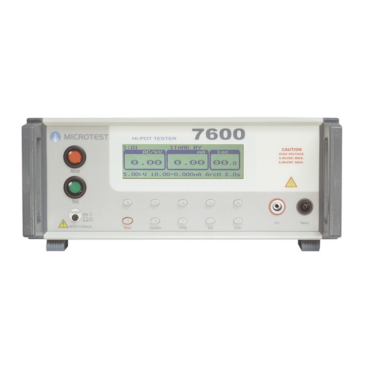 7600 为2 Channels 耐压测试仪,可应用在变压器、马达、电容、电感、线材、滤波器等范围。 性能特点 2 Channel扫描测试 绘图型LCD窗口 内建PLC Remote可程序遥控界面 开/短路侦测功能(7621) 可连结层间短路测试机(7700) 提供AC高压、DC高压、绝缘测试 可设定缓升时间 内建RS-232