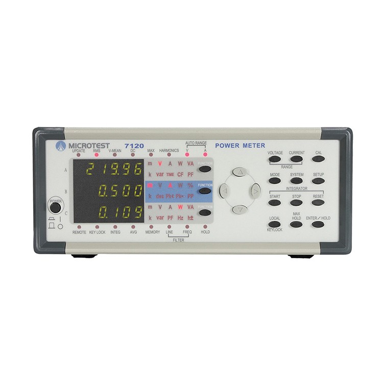 MICROTEST Power Meter 7110/7120的输入电流波峰因素可达到CF3/CF9,并拥有量程范围内所有数据均能量测优异特色,自动换文件速度上亦是同等级功率表最快,能迅速锁定电流量程、准确进行功率消耗分析,量测范围从0.001W到16KW均能量测。MICROTEST 7110/7120 能量测内含DC成份的AC功率消耗,对于分析正负半周不对称电器之电流信号,得到的功率因素PF更准确,市面上电器产品为因应欧盟对电器的待机规范,厂商均致力于将待机功耗尽可能降低,并能帮助电器厂商精准分析自家产品的待机功耗并能搭配个人计算机做长时间功耗分析。 性能特点 AC / DC 两用安培/瓦特小时计 宽广量程范围0.001W~16KW 附联机软件 待机功率分辨率达 0.001W 具波峰因素比显示 最高50阶谐波分析能力 1000组量测数据保存空间