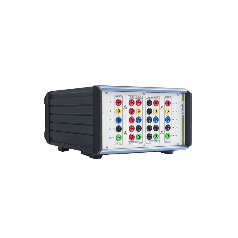 CDN-5401是配合雷击浪涌发生器(1.2/50ms开路电压波和8/20ms短路电流波),针对于低速非屏蔽不对称通讯线测试的耦合/去耦网络。内置浪涌匹配电阻,和多种耦合器件,可根据不同被试对象进行灵活选择。