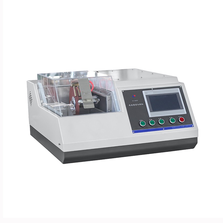 产品特点 1.采用人机界面、PLC控制,界面直观,操作简单。 2.语言中英文可以切换操作简单,参数设置方便。 3.主轴采用变频控制,过载保护。 4.有两种切割方式选择切割,更大范围适应各种材料切割。 5.R轴转速手动可调 6.设置参数可储存,不同材料切割选取用户储存参数即可,不需要每次从新设置参数。 7.有外循环水冷却装置。 8.封闭透明防护罩、安全开关为操作者提供保护。 参数 1)主轴转速:用户可以在500—3000r/min(选配500-5000r/min)之间任意设置来适应材料切割,无极调速运行时设置有效。 2)切割直径:φ60mm,设置适当的行程使切割完成停止切割,连续切割同样的样品不需要从新定位。 3)前进速度(切割速度):范围0.01-3mm/s,选择适应材料的切割速度,满足对材料切割要求,运行时设置无效。 4)冲击切割参数:进入冲击参数设置页面。 5)主轴转速设定值:点击下载配方数据到PLC按钮后,保存成功的主轴转速设定值 。 6)切割行程设定值:点击下载配方数据到PLC按钮后,保存成功的切割行程设定值 。 7)前进速度设定值:点击下载配方数据到PLC按钮后,保存成功的前进速度设定值 。 8)其他按钮:返回、**配方、上个配方、下个配方、末个配方、保存、删除、编辑、下载配方数据到PLC 。(用于配方操作) 9)手动速度:范围0-5mm/s,是指是手动前进后退速度,对设备操作不熟练时,应设置小一点,避免切割片撞上工件。 10)直接切割:是普通并且最经济的切割模式,适应大多数材料切割选择。(由顶部状态栏选择) 11)冲击切割:适用于无法找到适当切割片的某种特定材料和硬度相当高的材料,并且磨损的材料容易堵塞切割片,或者切割片的磨料不足,冲击切割可能会导致更高的切割片磨损,但会降低工件过热的风险。(由顶部状态栏选择)。 12)退刀速度:是指冲击切割运行到单次冲击距离后,退后时的速度,设置越大,退回时就越快。 13)退刀距离:最小值为回刀距离。每次冲击完成的快速退回距离。 14)回刀距离:最大值为退刀距离。每次退刀完成的快速前进距离。