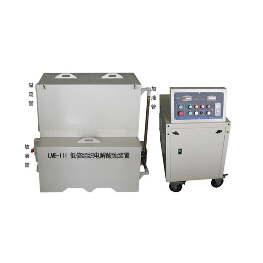 LME-III低倍组织电解酸蚀装置根据《GB226-2015钢的低倍组织及缺陷酸蚀检验法》、采用电解酸蚀方法制备低倍组织样品。 电解酸蚀法采用的盐酸浓度只有热酸蚀法的一半,并且无须加热,温度低,盐酸的挥发少,显著改善工作环境。 该装置不必预热,打开电源,即可腐蚀,可节省时间;并可同时并列放置多排样品,因而效率高、重复性好。 电源控制部分和电解腐蚀槽之间可长距离分开放置, 以减少操作人员的损害和电源控制部分的腐蚀。 该装置适用于每天有大量样品的用户,如试样数量较少或较小,建议使用低倍组织热酸蚀装置。