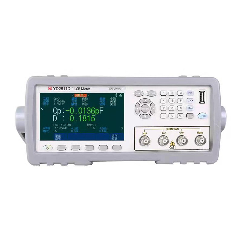 产品规格 型号 | YD2811D-1 | 测试参数 | | Z|, |Y|, C, L, X, B, R, G, D, Q, θ ,DCR | 测试频点 | 50 Hz-50、60、80、100、120、150、200、250、300、400、500、600、800、1K、1.2K、1.5K、2K、2.5K、3K、4K、5K、6K、8K、10K、12K、15K、20K、25K、30K、40K、50K、60K、80K、100K、120K、150K、200K(Hz) ,37个频点1mHz步进 | 测试电平 | 正常:0-1V可调 准确度:10% | 显示范围 | |Z|,R,X 0.01m Ω — 99.999 MΩ |Y|,G,B 0.0001µS — 99.999 S C 0.0001 pF — 9.9999 F L 0.0001 µH — 999.99 H D 0.0001 — 9.9999 Q 0.0001 — 99999 Θ(DEG) -179.99º — 179.99 º Θ(RAD) -3.14159 — 3.14159 | 基本精度 | 0.1% | 测量速度 | 快速: 40次/秒, 中速: 11次/秒, 慢速: 3次/秒 | 等效电路 | 串联, 并联 | 输入阻抗 | 25Ω、30 Ω、50 Ω、100 Ω可选择 | 显示方式 | 直读,Δ,Δ%,V/I(被测电压/电流监视) | 其他功能 | 十档分选功能,100组内部仪器设定供存储/调用,外部500组,标配RS232C、USB HOST,可选GPIB 、HANDLER | 电源及温湿度 | 100V-120V 198V-242V,0℃-40℃ 90%RH | 尺寸及重量 | 380mm×102mm×270mm,约3.6kg |