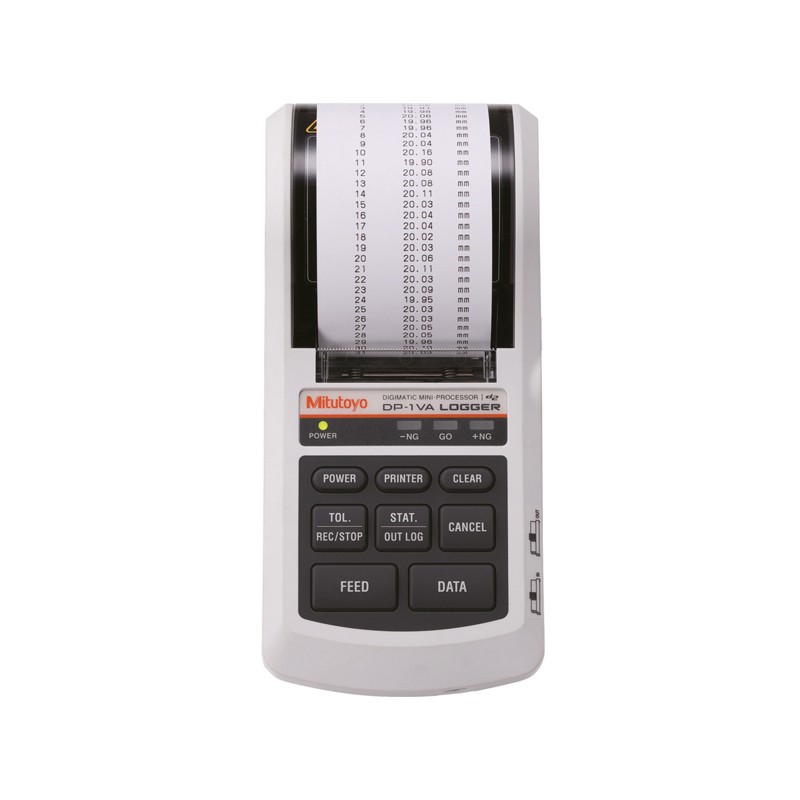 DP-1VA LOGGER DIGIMATIC微型处理器 DP-1VA LOGGER不仅能打印Digimatic量具输出的测量数据,还可以进行各种统计分析,绘制直方图和D型图,甚至还可以进行Xbar-R控制图这样复杂的操作等,具备优异的操作性。 此外,强大的数据记录功能,可将最多1,000个数据存储到主机中,并通过USB电缆与计算机连接,将保存的数据批量发送到EXCEL检查报告中。Digimatic微型处理器DP-1VA LOGGER采用2种供电方式,追求优异的机动性和灵活性。在提高品质管理效率、改善质量方面可发挥强大威力。 产品特点 技术参数 货号 | 264-505DC | 型号 | DP-1VA LOGGER | 数据输入 | Digimatic输入、d2输入、RS-232C输入(本公司KA计数器专用) | 打印方式 | 热敏行式打印机 | 字符规格 | 总点数:384点/行点大小:8点/mm | 打印速度 | 每1行0.8秒(6.5mm/s) | 使用打印纸※1 | 高耐久性热敏纸、纸宽58mm、每卷48m | 电源 | 2种供电方式 1. 100V 50/60Hz AC适配器(6V,2A) 2.可使用五号碱性电池(LR6)或镍氢电池(Ni-MH SizeAA) 4节(不可使用锰电池) | 电池寿命※2 | 约10,000行(20°C下使用1,600mA Ni-MH每5秒打印1次时) | 数据处理能力 | MODE0/100,000数据MODE1、2/9,999数据 MODE3/样品尺寸10×子组9,999=总数据数99,990 合格与否判断(可设定5组) | 公差判断 | 可设定5组 | 测量数据记录(保存) | 最多1,000个 | 输入间隔 | 0.25秒、1秒、5秒、30秒、1分钟、30分钟、60分钟 | 数据输出 | USB输出 TTL电平转换为RS-232C格式输出数据合格与否判断结果输出(-NG,GO,+NG) | 时钟精度 | 最大月差±2分钟 | 使用温度范围 | 0℃~45℃(使用AC适配器时) 10℃~45℃(使用电池时) | 储存温度范围 | -10℃~50℃ | 重量 | 390g(仅主体) | 外观尺寸 | W 94×D 201×H 75.2mm |