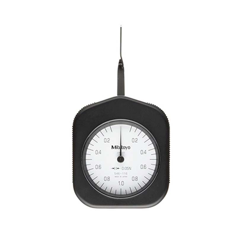 546系列 触点压力计 能够机械地测量难以捕捉的瞬间实际张力。同时也广泛地被用于测量指针式指示表的测力、继电器、微动开关、阀门等的接触力,或者精密弹簧类的弹簧压力。 支轴中的微型抗摩轴承保证了稳定的测量。 两种类型都可用 :标准型和峰值保持型。 技术参数 货号 | 型号 | 分度值 | 测量范围 | 精度 | 546-112 | DTG-5N | 2mN | 6mN - 50mN | ±0.5 (刻度) | 546-113 | DTG-10N | 5mN | 10mN - 100mN | 546-114 | DTG-30N | 10mN | 30mN - 300mN | 546-115 | DTG0N | 0.02N | 0.06N - 0.5N | 546-116 | DTG-100N | 0.05N | 0.1N - 1N | 546-117 | DTG-150N | 0.05N | 0.15N - 1.5N | 546-118 | DTG-300N | 0.1N | 0.3N - 3N | 546-119 | DTG-500N | 0.2N | 0.6N - 5N |