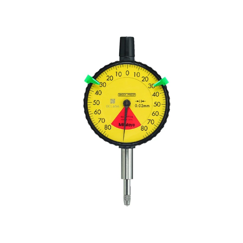 2系列 标准型指针式指示表(单转型・轻量型) 采用三丰开发的防震机构,对于因冲击造成的测杆突然缩回而引起的震动,具有良好的抗冲击性。 该系列已消除了因指针转数的计算错误而导致的读数误差。 轴套、测杆经过高强度淬火处理,适于高强度测量。 使用硬质合金测头。 表蒙采用多涂层工艺,具有良好的防划性、可视性和耐化学腐蚀性能。 轻量型(70g)。 红色的区域表示“精度无法保证”。 选件 限值爪(2个): No.21AZB195 技术参数