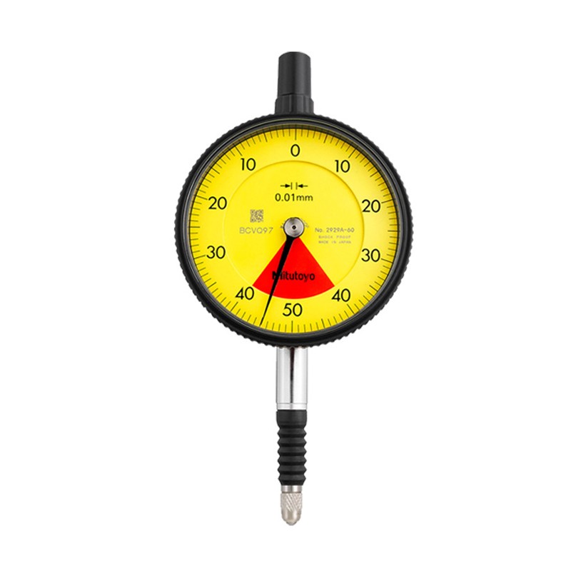 2系列 标准型指针式指示表(单转型・防水型) 采用三丰开发的防震机构,对于因冲击造成的测杆突然缩回而引起的震动,具有良好的抗冲击性。 该系列已消除了因指针转数的计算错误而导致的读数误差。 表圈锁紧装置和测杆提升杆(选件)可装在左侧或右侧,而且可轻易装卸而无需借助工具。 轴套、测杆经过高强度淬火处理,适于高强度测量。 使用硬质合金测头。 表蒙采用多涂层工艺,具有良好的防划性、可视性和耐化学腐蚀性能。 红色的区域表示“精度无法保证” 。 选件 限值爪(2个): No.21AZB195 表蒙锁紧装置: No.21AZB148 技术参数