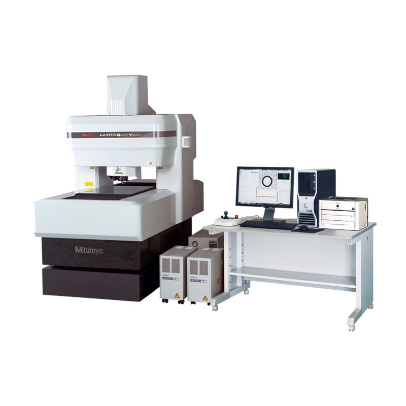 ULTRA 404 超高精度CNC影像测量机 ULTRA QUICK VISION是实现测量精度E1XY(0.25+2L/1000)μm的高精度CNC影像测量机。 X, Y, Z各轴采用本公司开发的高分辨力(0.01μm)、高精度的低热膨胀玻璃标尺。 Y轴采用高刚性固定桥式移动工作台设计,底座采用具热稳定性强的岩石平板。 标配有使用测量机主机温度传感器和工件温度传感器的自动温度补偿功能。 产品型号