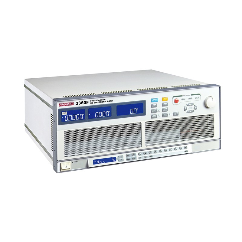 3360F系列具有独立的控制及显示面板、定电流/定电阻/定电压/定功率/动态模式,配合面板上的150组 储存/呼叫 记忆,能有效地控制所有负载的设定,更可透过RS232、Ethernet、USB和GPIB等介面进行远端控制。 具备短路测试功能及设定短路时间,并可量测短路电压及电流。 在定电流及定功率模式下,可做动态负载之模拟,其电流上升、下降斜率均为独立可调,另具有一外部输入任意波形之动态负载功能 具有OCP 、OPP单键测试功能,使得OCP、OPP之测试更有效率及准确。 可设定的吃载/停止吃载(LOAD ON/OFF)电压点及良/不良(GO/NG)的比较判断功能、电压极性显示可正可负及150组 储存/呼叫 记忆,使得负载更适用于各种不同的应用。 多达150组测试参数及状态的储存功能,让其可根据自动测试(auto sequence)需求,随时将储存记忆调出来任意使用。 因其耐压高达500V,故而非常适用于功率因数调整器(PFC)的测试应用。 针对电池BMS保护板提供Short、OCCP及OCDP之保护功能测试(选购)