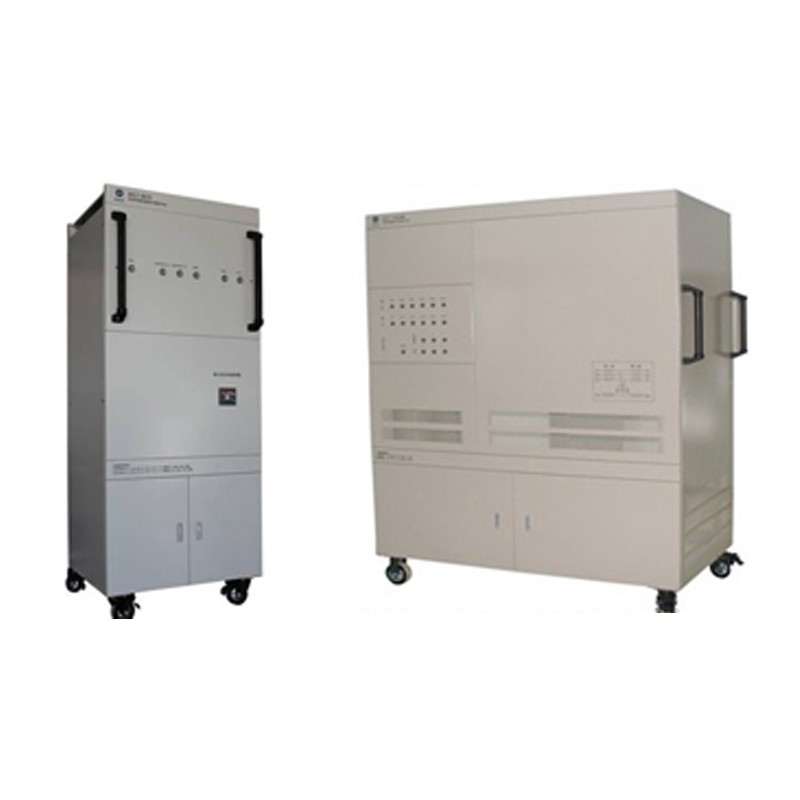 ACLT-3875HRLC负载箱 1. 可根据性能参数检测要求,通过操作面板设置相应的功率,任意组合、设定放电功率。 2. 整机采用电子电路控制,具有温度过热自动阻断保护功能:由于特殊原因出现过热时,可自动切断负载。 3.可以模拟阻性负载、感性负载及容性负载的用电负荷,精确检测各种交流供电设备的输出功率与带载能力,精确检测交流设备的供电工作性能。 4.具有交流放电测试功能。阻性负载:0-255KW连续可调;感性负载:0-255KVA连续可调;容性负载:0-255KVAR连续可调。 5.仪表接入RLC负载可以分相独立控制,每相负载功率可以独立调节,可以满足检测供电设备在负载不平衡工作状态下的工作性能。 6.ABC及零线接线排N都能满足长时间通过电流600A,能满足单相加载工作或缺相加载工作。 7.可以远程控制并调节RLC功率负荷,控制室(控制台)与仪表主机距离约20米; 8.远程控制台采用LCD液晶显示屏,可同时显示三相电压、电流值、功率因数、频率、有功功率、无功功率、视在功率等,也可显示电压、电流波形。可以将测量数据上传到PC机上并实现对检测过程数据的过程记录存储功能。 9.可以记录ABC三相电压、三相电流、三相功率的最大值、最小值、平均值、峰峰值,能自动记录并存储; 10.主机具有电压谐波检测功能和电流谐波检测功能,能以柱状图方式直观同时显示电压和电流的各次谐波含量。 11.采用低噪音风机,且具有过热自动保护、风量不足或风机不转自动停机等功能。 12.可以满足模拟功率因素±0.8—1负荷状态下,仪表能长时间放电检测工作。 13.交流谐振发生时,LC回路在大电流工作状态下,仪表可以长时间工作,不会烧毁仪表内部连接电路。 内置RLC负载的内部示意图: 仪表能能满足单相加载工作或缺相加载工作,ABC及零线接线排N都能满足长时间通过电流600A。 RLC交流负载柜ACLT-3875H操控面板 1. 具有远程控制功能,要求可以在约20米距离控制、调节放电功率负载,满足各种现场检测需要。 2. 仪表具有背光LCD显示功能,LCD显示屏置于远程控制台上,具备在强光状态下清晰显示不影响检测。 3. 远程控制面板示意图要求如下:控制面板尺寸是:490mm*440mm 技术参数