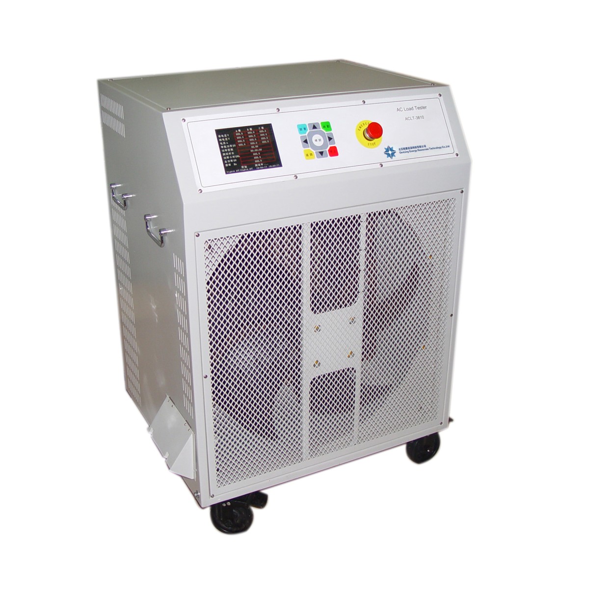 ACLT-3810交流智能假负载 北京群菱专业生产的ACLT-3810可以精确测量各类发电机组、交流设备及UPS设备的输出功率和带载能力,随机设备的分析软件可以记录整个测试过程的各种数据,并自动生成测试报告,便于建立设备运行状况的管理档案。 ACLT-3810应用领域 本产品广泛应用于电信、网通、移动、联通、铁通、电力、民航、银行、证券、铁路局电务段等行业,是UPS设备工程验收与日常维护必备测试工具,是柴油发电机组工程验收与日常维护必备测试工具。 1、检测UPS设备的输出功率与带载能力 新装UPS设备的工程验收时,检测UPS设备输出功率及蓄电池能否达到设计要求。 UPS设备日常维护例行检测,根据新颁发通信电源维护规程要求,每年要对UPS设备进行核对性放电试验。 2、检测柴油发电机输出功率与带载能力 新装柴油发电机工程验收时,检测其能否达到设计要求。 柴油发电机加装消声器等降噪设备后,检测其输出功率能否达到通信设备运行需要。 柴油发电机经过修理后,检测其输出功率、带载能力等性能指标是否符合要求。 柴油发电机的日常维护例行检测,根据新颁发的通信电源维护规程要求,每半年要对柴油发电机加载试机15-30分钟。 3、检测交流稳压器、逆变器、开关电源等通信交流设备的输出功率与带载能力 ACLT-3810产品功能 1、采用大液晶屏显示,全中文菜单提示,显示各项参数及实时测试数据。 2、参数检测和带载放电同时进行,单片机控制可自动检测交流负载的功率、功率因数、各相电压、各相电流、频率等参数。 3、可设定放电功率,从而实现恒功率或分段带载放电,可靠性高,无红热现象,过热自动保护功能。 4、通过键盘可设置:功率、测试时长、记录周期、电压下限、电压上限、操作模式、接线方式、日期、时间、额定功率、额定电压、额定频率等参数。 5、报警功能:声响报警并停机;报警内容:欠压,过压,高温,紧急停机。 6、自动停机功能:可设定测试时长、保护电压等参数,在下列任一条件满足时,自动停止测试:测试时间到,保护电压到等。 7、查询功能:可以查询检测数据。 8、联机通讯:交流负载可通过RS232接口与上位计算机直接进行微机通讯或通过U盘转存数据。 9、计算机控制及数据处理功能。 10、通过PC机对系统参数进行设置,并可启动/停止放电过程。 11、可以获取交流负载的放电参数。 12、开始/停止在线监测。 13、数据转存:放电结束后,可把采集的数据转存到U盘,再由U盘将数据转存到PC机中或通过RS232接口直接上传至计算机,经配套的数据处理软件对数据信息进行处理生成各种图表。 14、放电结束后,对放电数据整理、打印、报表、存档。 15、并机功能:可将2-9台同型号单机并联工作。 16、仪器使用安全、寿命长且噪音小。 ACLT-3810安全保护 1、E-STOP紧急停止开关 2、三相电压过高检知,发出告警并自动停机 3、三相电压过低检知,发出告警并自动停机 4、两个温度检知,发出告警并自动停机 5、风扇故障检知,发出告警并自动停机 6、具有过流短路保护功能,操作安全简单 7、主要功耗元件采用专利材料,无红热现象 8、具备多重安全保护措施,有效保障设备进行安全测试 技术参数