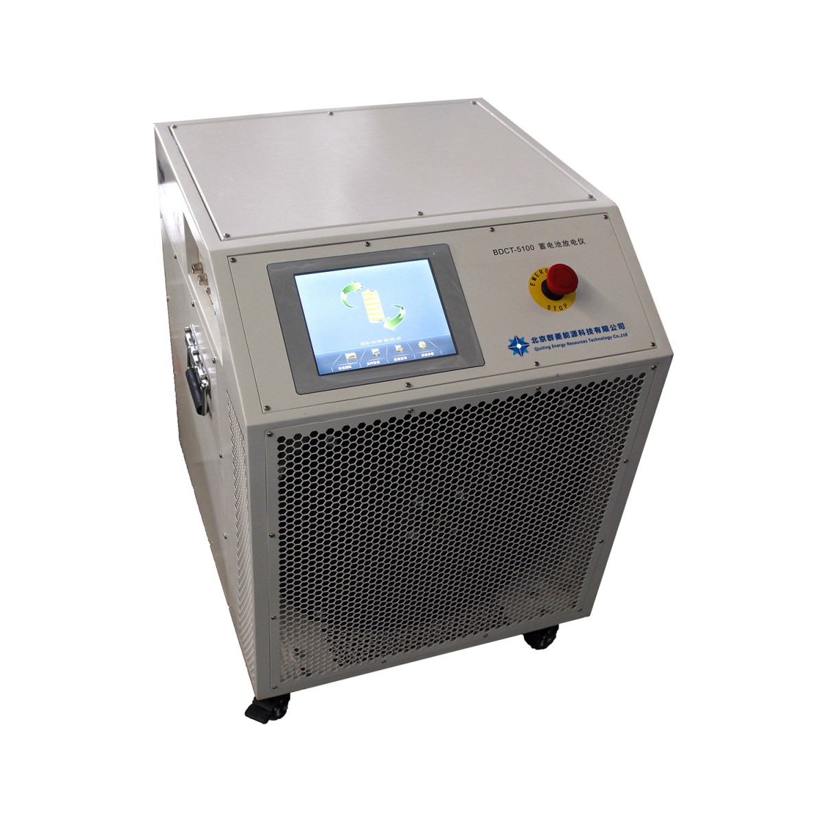 BDCT-5100直流放电负载 BDCT-5100 是针对UPS 500V蓄电池组容量测试、维护等需求而设计,是一台安全便携智能型的直流放电负载,适用于容量小于1000AH的500V蓄电池维护测试。 本设备还可与蓄电池组在线容量监测设备连机作业,当电池组放电时,有任一单体电池的端电压达到设定的截止电压值时,BCSU会通知BDCT停止放电,以避免任何电池过度放电,对电池造成伤害。 此种测试方法虽跟传统测试方法相近,但不需要人工调整负载电流和记录,可以很方便的取得需要的资料和各种分析曲线,同时智能型负载体积小、重量轻、易于搬运,且采用特殊高效能电热元件,不产生红热现象,不会使环境温度升高,并具有各种保护功能,以方便长时间无人看管的放电和自动测试记录,特别适合于蓄电池的验收、核对性放电试验及定期深度放电场合使用。 适用于各种动力电池:碱性、酸性、胶体电池、铁锂、锰锂、钛酸锂等电池。 BDCT-5100突出应用 1、新引进UPS电池的工程验收。 2、UPS蓄电池的日常维护测试。按照维护规程对已投入使用的电池进行定期的核对性放电试验及深度放电试验。 3、通过放电100%精确测量出蓄电池组的容量。 4、取代传统人工不准确的、不安全的测试方法,保证电池、通信机房、工作人员的安全。 5、可模拟负载供电电流,最大以100A电流有效测试出UPS蓄电池的大电流放电能力。 BDCT-5100产品特点 1、LCD背光显示 2、可设定恒电流放电值(无段式):1—100A连续可调 3、可设定蓄电池组放电终止电压:连续可调,数字面板输入 4、可设定累计放电容量(AH值) 5、所有高效能电热元件均符合UL安全规格 6、完全采用高效能电热元件,无任何电热丝,即使风扇故障也不会产生红热危险 7、可多部并联放电,以适应大电流放电的场合 8、可与蓄电池组在线容量监测设备连线作业,有报警自动停止放电 9、中文触屏视窗,操作简单 10、与PC机连线,采用WINDOWS的作业环境,易于操作,且可同时显示蓄电池组恒流放电容量测试设备(BDCT)与蓄电池组在线容量监测设备(BCSU)的曲线图 11、采用特殊大电流夹头,不必拆开电池的接头,即可直接夹住测试,简单又方便 12、带有RS232、RS485、USB数据转存接口。及接网线RD45均可。 13、主机内置SD存储器,无须携带电脑,单机即可工作;日后用电脑打印报告即可。 14、带有电压电流校准修正功能,可随时对仪表的测量值进行校准修正,保证测量精度。 15、带有正负电缆线防反接功能,避免正负级接反引起短路。 16、带有掉电保存功能。掉电后所有测试数据不丢失,加电后继续工作,防止意外掉电影响取得完整的测试结果 17、带有数据分析打印软件,分析打印放电曲线,放电容量,自动生成测试报告。 技术参数