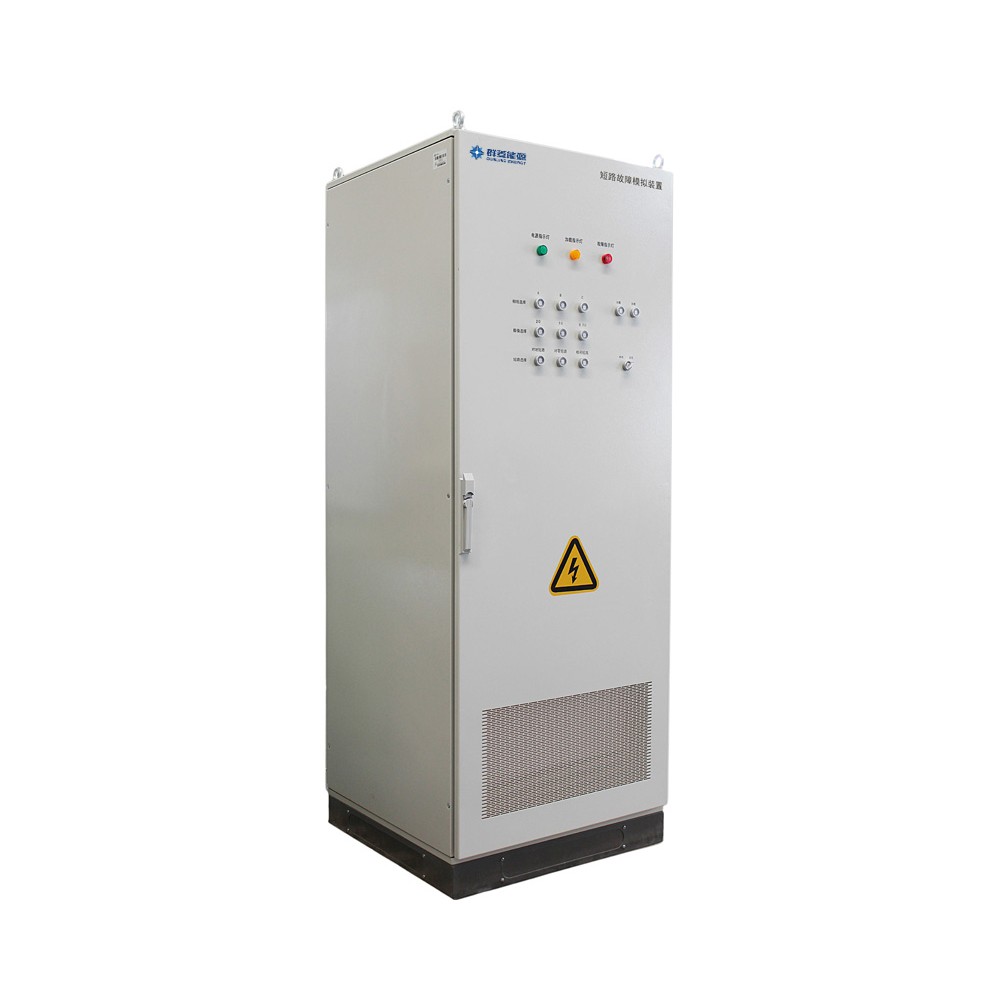 短路故障模拟负载 可精确模拟不同电缆位置的接地故障,故障点之间可相互切换; 每个短路回路带有1欧 、5欧、10欧三种限流电阻; 带有控制盒软件编程控制,时故障持续时间可设置; 连接的公共低压供电系统电缆接地故障的模拟; 配电线路故障模拟:包括相间短路、三相短路、单相接地、两相接地、三相接地等故障; 有温度过热自动阻断保护功能; 含接地故障模拟,且噪音低,下进线、下出线、上排风、适用于室内工作。 技术参数: 适用电压范围:0~400V,最大通过电流200A; 电阻精度:0.2%; 以接地电阻为2Ω为例:稳态故障电流最大达到115A,暂态最大峰值电流约为345A(短时间≈1s); 工作电源:单相 220V 50Hz; 适用环境温度范围:-20℃~+40℃; 冷却方式:风冷; 外观尺寸及重量:800mm * 800mm* 2000mm(具体高度及重量与系统容量有关)。 基本线路图: