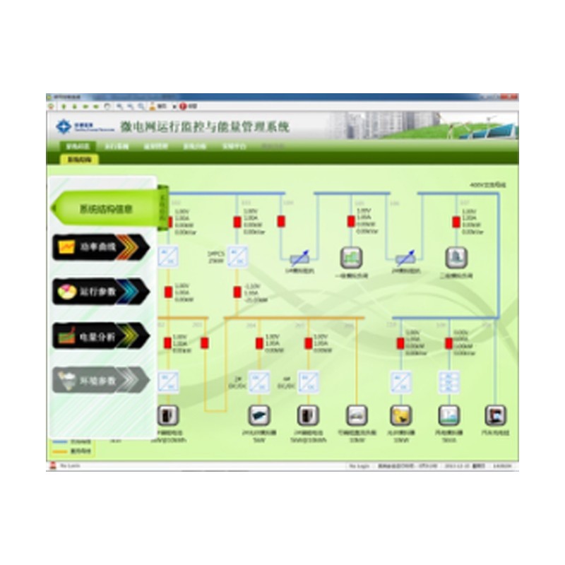 主要功能特点 1.监控部分 1)微电网内所有设备实时数据采集和处理 2)安全报警处理 3)事件顺序记录和事故追忆功能 4)控制功能 5)管理功能 6)在线统计计算 7)画面显示和制表打印、人机接口 8)时钟同步 9)远动功能 10)与继电保护装置的通信 11)系统的自诊断和自恢复 12)维护功能 13)网络通讯功能 2.能量管理控制(模块化设计,用户可自由选择) 1)能量管理多目标控制模块 2)通用数据库模块,包括实时数据库和历史数据库,满足微电网实时性和数据存储要求; 3)通讯协议解析,接收电网调度模块 4)微电网决策分析模块 5)微电网发电计划、功率预测、负荷预测等模块