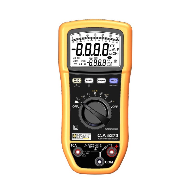 CA5273 6000-计数数字万用表是一类精确的真有效值(TRMS)万用表,可用于日常的各种电气设施的维护。该类型万用表具有标准万用表所有的功能,包括:电压、电流、频率及电阻的测量,通断性测试和二极管测试。采用人体工程学设计,手持和操作都非常舒适,通过一个大旋钮,即可方便快捷的选择各种功能。