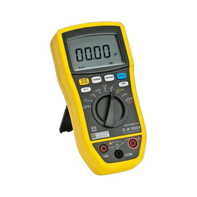 CA5233 6000-计数数字万用表是一类精确的真有效值(TRMS)万用表,可用于日常的各种电气设施的维护。该类型万用表具有标准万用表所有的功能,包括:电压、电流、频率及电阻的测量,通断性测试和二极管测试。采用人体工程学设计,手持和操作都非常舒适,通过一个大旋钮,即可方便快捷的选择各种功能。
