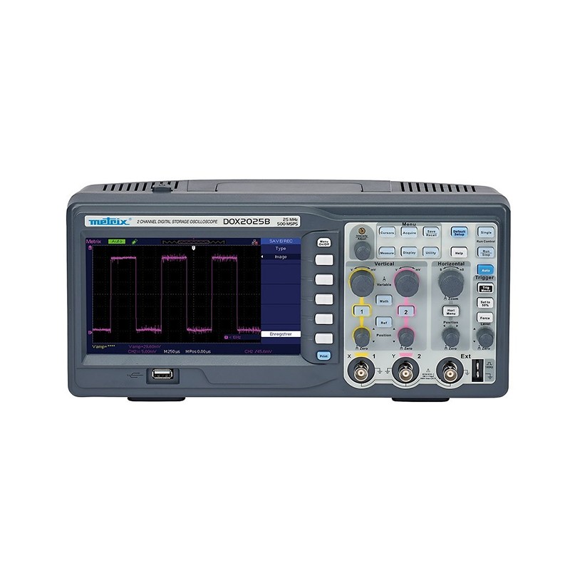 METRIX®DOX2000系列示波器特别紧凑和简单易用,特别设计供实验室使用。 设备配备了一个可以显示18 div的全屏模式。这可以使用户定制显示内容:选择正常或持续显示,YT或XY格式,调整颜色,大小,亮度,对比度等等。旋转按钮和背光键给前面板增色不少。 示波器配备把手,使它可以方便携带;防滑四脚可以使设备在户外使用更稳定。 高性能和多种功能用于数据的采集和分析。 存储深度32 k或2 M优化分析。垂直灵敏度从2mV/div到10 V/div。水平灵敏度2.5 ns到50s/ div。高级功能:简单的数学函数(+ / - / x /÷)和“实时”FFT与同步显示的波形。 附带EASYSCOPE软件,使您能够更加方便的管理您的数据和图形。 性能特点: