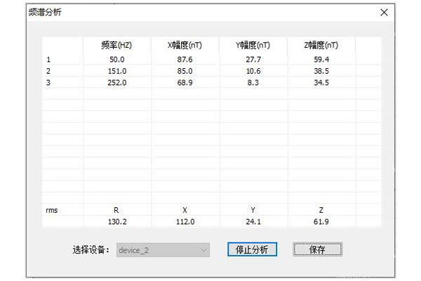 功能 | 1、可自动记录和显示趋势图曲线; 2、可实时显示磁场强度的分量值和矢量值; 3、可实时保存磁场强度数据至电脑; 4、可进行频谱测量显示(选项)。 |