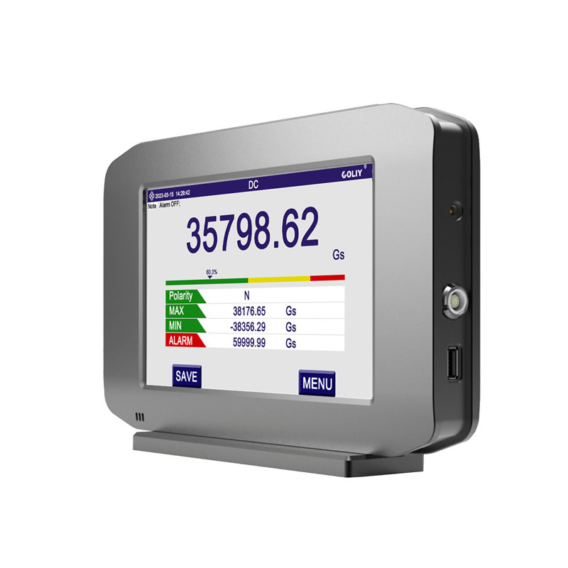 COLY公司开发的图形界面操作系统允许用户以触摸的方式选择菜单,操作简便,一目了然。 彩色LCD显示屏显示多种数据:时间、测量模式、实时磁场强度、磁极的极性、最大值、最小值、相对值、保存时间间隔、注解、报警阈值、时域图等。 智能记录和查看