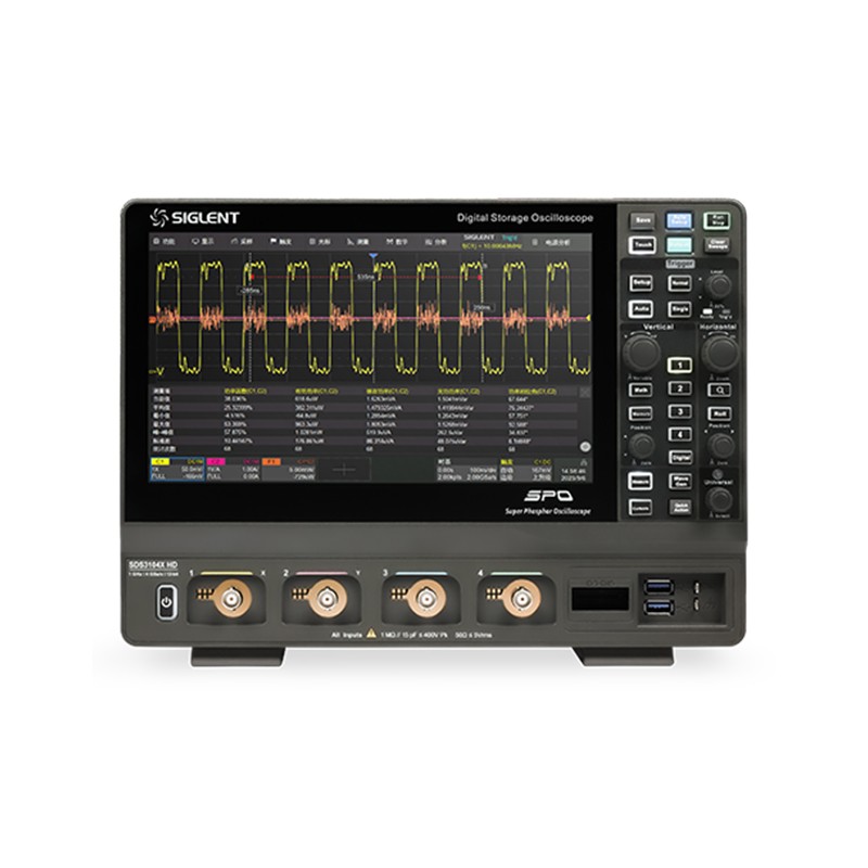 SDS3000X HD 系列高分辨率数字示波器, 具有最高 12-bit垂直分辨率、优秀的本底噪声性能和垂直测量精度, 能满足更高精度的测量需求。SDS3000X HD 的最大带宽 1 GHz, 采样率最高 4 GSa/s, 具备 4 个模拟通道和 16 个数字通道, 存储深度可达 400 Mpts/通道。SDS3000X HD 采用的SPO 技术, 波形捕获率高达 890 000 帧/秒, 具有 256 级辉度等级及色温显示;创新的数字触发系统, 触发灵敏度高, 触发抖动小;支持丰富的智能触发、串行总线触发和解码;支持历史 (History)模式、分段采集 (Sequence)、模板测试、搜索、导航、波特图和电源分析等高级分析模式;具备丰富的测量和数学运算功能。SDS3000X HD 采用了 10.1 英寸电容式触摸屏, 支持多种手势实现对波形和菜单的常用操作, 结合前面板的多个一键操作按键, 极大地优化了操作示波器的效率,提升了用户体验。 SDS3000X HD主要特性