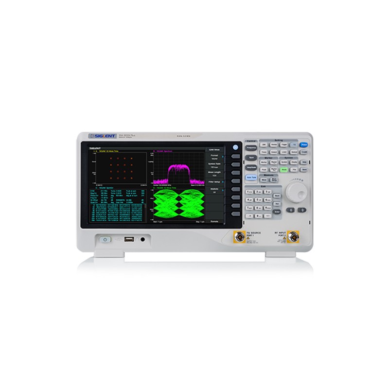 EMI预兼容测试 在EMI诊断和EMI预兼容测试方面有丰富的功能和附件支持,包括 · 测试补偿Correction,针对探头,天线,LISN,电缆的频响补偿功能; · 限制线判断Limit,加载EMI国际标准限制线,或用户自定义限制线; · 频率对数轴,实现对数频率显示和限制线; · 符合CISPR 16-1-1的EMI滤波器和准峰值检波器,以及可配置准峰值的测量驻留时间; · Siglent SRF5030T探头套装,是大部分辐射骚扰测试的利器,提供4种不同分辨率的磁场和电场探头,针对空间辐射,线缆,PCB等查找干扰源;SSA同时标配20dB的前置放大器,以提高系统测试灵敏度。 · Siglent SEM5040A人工电源网络,产品的性能符合CISPR16-1-2:2006标准要求,适用于单相设备传导骚扰电压测量。 · EasySpectrum上位机软件,支持完整的EMI预兼容测试自动化实施流程,可极大节省预兼容测试的时间;该软件也支持全流程的文件配置,方便工程管理。 调制分析 丰富解调分析功能: · 支持AM/FM模拟调制分析,以及ASK/FSK/PSK/MSK/QAM数字调试分析等复杂调制分析功能; · 具备EVM,幅度和相位偏移误差,IQ偏移误差,增益不平衡等多种数据分析能力; · 具备眼图,星座图,相位图,时域,频域,误差域等多种分析格式。