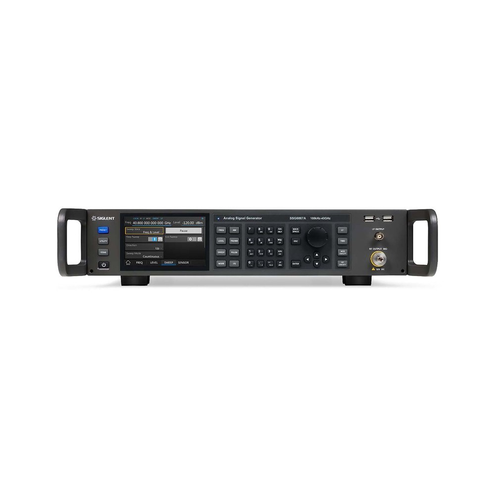 SSG6000A 产品综述 SSG6083A,SSG6085A,SSG6087A,SSG6089A 微波模拟信号发生器,具有超低的相位噪声及良好的信号纯度。输出频率范围涵盖 100 kHz ~ 67 GHz,同时支持 AM 模拟调制,支持脉冲调制,脉冲序列发生器,功率计控制等功能。配置了高稳定度和高精度的 OCXO 参考,具有出色的稳定的信号输出,宽广的功率输出动态范围,适合应用各种研发及生产场景。 SSG6000A 产品选型 型 号 频率范围 频率分辨率 IQ调制 最大输出功率 相位噪声 显示 通信接口 SSG6089A CW MODE 100 kHz~67 GHz 0.001 Hz 无 +16 dBm <-146 dBc/Hz@1 GHz, offset=10 kHz 5 英寸电容触摸屏 USB-HOST,USB DEVICE(USB-TMC),LAN(VXI-11,Socket,Telnet),选配GPIB SSG6087A CW MODE 100 kHz~40 GHz 0.001 Hz 无 +16 dBm <-135 dBc/Hz@1 GHz,偏移20 kHz(典型值) 5 英寸电容触摸屏 USB-HOST,USB DEVICE(USB-TMC),LAN(VXI-11,Socket,Telnet),选配GPIB SSG6085A CW MODE 100 kHz~20 GHz 0.001 Hz 无 +22 dBm <-135 dBc/Hz@1 GHz,偏移20 kHz(典型值) 5 英寸电容触摸屏 USB-HOST,USB DEVICE(USB-TMC),LAN(VXI-11,Socket,Telnet),选配GPIB SSG6083A CW MODE 100 kHz~13.6 GHz 0.001 Hz 无 +22 dBm <-135 dBc/Hz@1 GHz,偏移20 kHz(典型值) 5 英寸电容触摸屏 USB-HOST,USB DEVICE(USB-TMC),LAN(VXI-11,Socket,Telnet),选配GPIB SSG6000A 主要特性