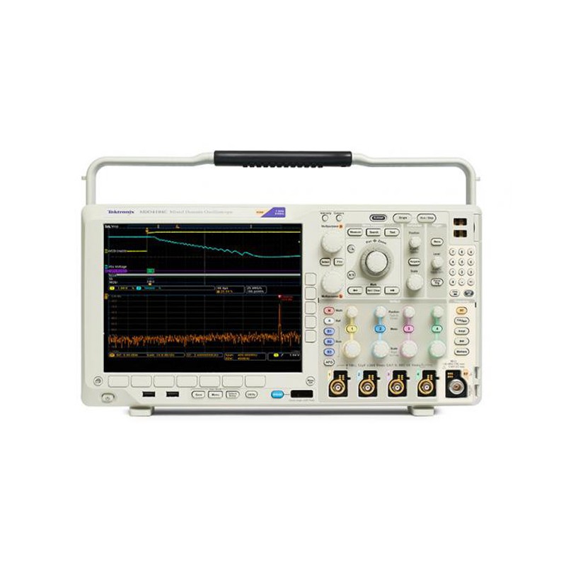 MDO4000C系列 混合域示波器 MDO4000 是功能强大的混合域示波器,组合了多达六种仪器,包括函数发生器和内置频谱分析仪等选件。与其他仪器不同,它可以同步射频、模拟和数字通道,您可以从****的深度洞察您的设计。 产品特点