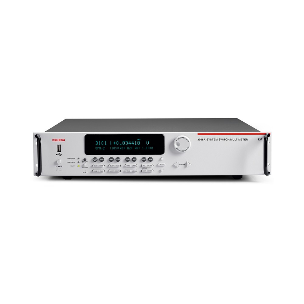 3700A 系列 系统开关/万用表 3706A 型系统开关带有高性能数字万用表,包含用于插卡的六个插槽,采用紧凑型 2U 高的机箱,可以轻松地满足中高通道数应用的需求。 满载情况下,主机最多可支持 576 条双线多路复用器通道,实现****的密度和低廉的每通道成本。 因此,这是一个紧密集成的开关和测量解决方案,既适用于工作台也适用于机架。 特点 | 优势 | 提供四种配置选项 | 允许购买应用所要求的最小功能:带或不带 DMM、 带或不带前面板显示屏和键盘。 | 嵌入式测试脚本处理器 (TSP®) | 通过在仪器中嵌入测试脚本,避免 PC 控制器与仪器之间出现通信延迟, 显著提高测试吞吐量。 | TSP-Link® 主/从连接 | 实现主机之间的轻松系统扩展;还可连接到其他支持 TSP-Link 的仪器, 如 2600B 系列 SourceMeter SMU 仪器。 | 选配的 7½ 位数字万用表连接到主机的模拟背板 | 确保从每个卡通道到万用表均有高质量信号路径。 | 选配的数字万用表能够以 3½ 位存储 >14,000 个读数/秒 | 支持高吞吐量元器件测试。 | 前面板 USB 2.0 设备端口 | 支持将读数、系统配置和测试脚本保存到记忆棒,从而简化这些内容的传输。 | 内置 LXI/以太网、GPIB 和 USB 接口 | 支持轻松与测试系统中的其他设备连接。 | 十四条可编程数字 I/O 线路 | 可轻松控制元器件处理程序等外部设备或其他仪器。 |