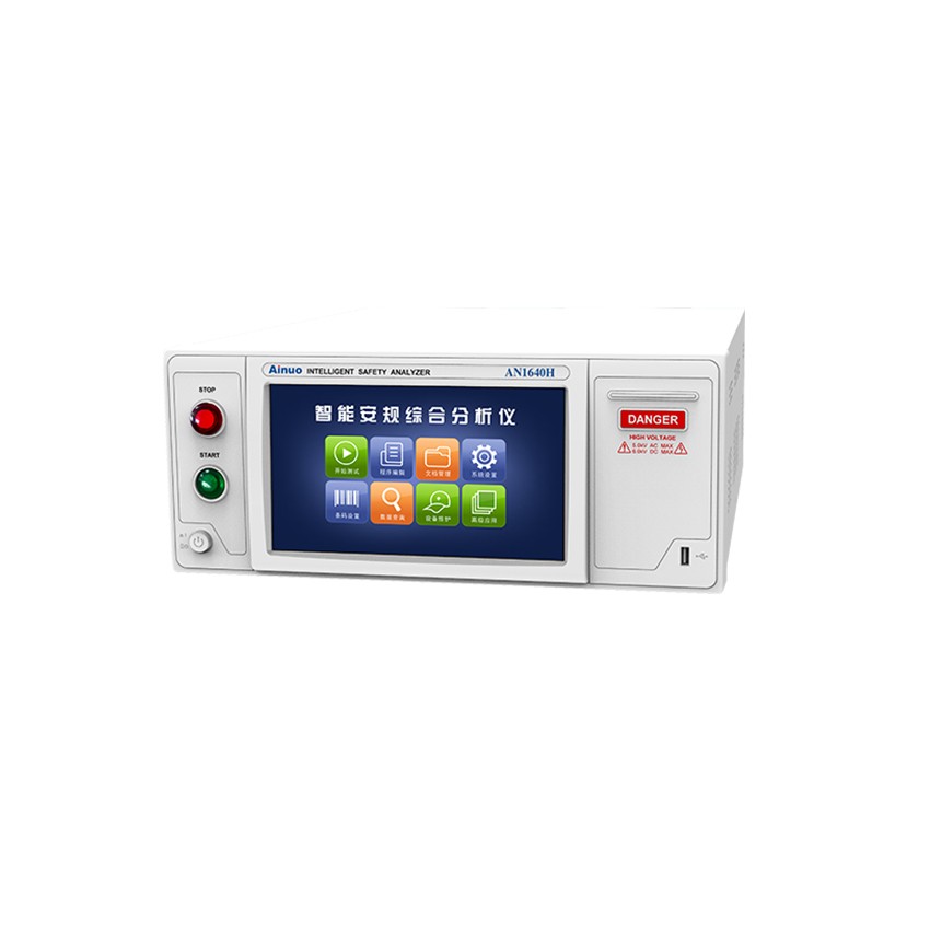 艾诺公司AN1640H、AN1651H系列智能安规综合分析仪,具有高可靠、高速度、智能化等新特点,适用于快节拍、混合产线,满足自动化、信息化、MES管理的电器产品高端产线使用。系列产品可满足家用电器、灯具、医疗设备、音视频/信息设备/通信设备、充电桩、实验设备等各种电器产品的电气安全性能和功率参数测试需求。 系列产品在八合一基本功能基础上,还具备丰富的细分行业专用功能,包括小家电多档功率自动判断、节能灯切换控制测试、电源LN相序检测、热态耐压、64A接地测试、接地首项启动、泄漏功率不断电测试、内置或外置隔离变频电源(500W/6KW/10KW)、美标电源等。 系列产品实现了“到位识别、智能扫码、并行测试、数据存储、智能语音、异常控制、MES连接”的七步测试法,满足电器生产线智能化、快速化、信息化的智能制造新需求。 系列产品提供主机安卓系统或工控机/ESS系统两种信息化平台方案,具备测试数据本地存储,支持数据查询、统计、导出功能:测试数据实时网络传输,支持主动上传、查询上传、断点续传等方式:可支持各类MES数据库对接,实现测试数据上传服务器、从服务器下载测试程序等。 产品特点 高可靠