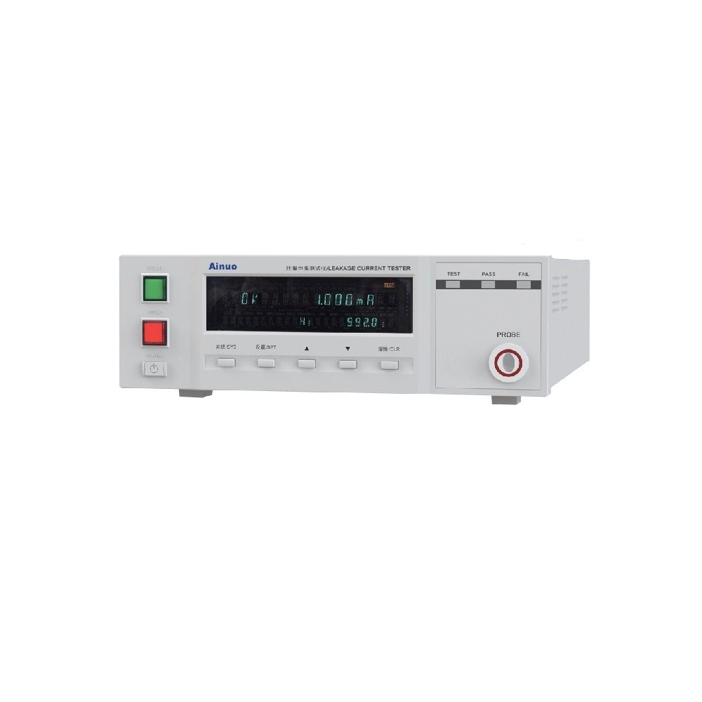 性能特点: 满足CCC、IEC、EN、VDE、BS、UL、JIS等电气安全强制标准的测试要求; 标配GBT12113图4网络,可选择其他标准的网络卡; 网络卡及测量带宽DC~1MHz; 插卡式人体网络,更换人体网络卡,方便满足其他行业标准要求; 泄漏电流上、下限设置功能,智能判定,声光报警; 采用高清VFD显示,简洁面板操作; 遥控接口、RS232/485接口功能。